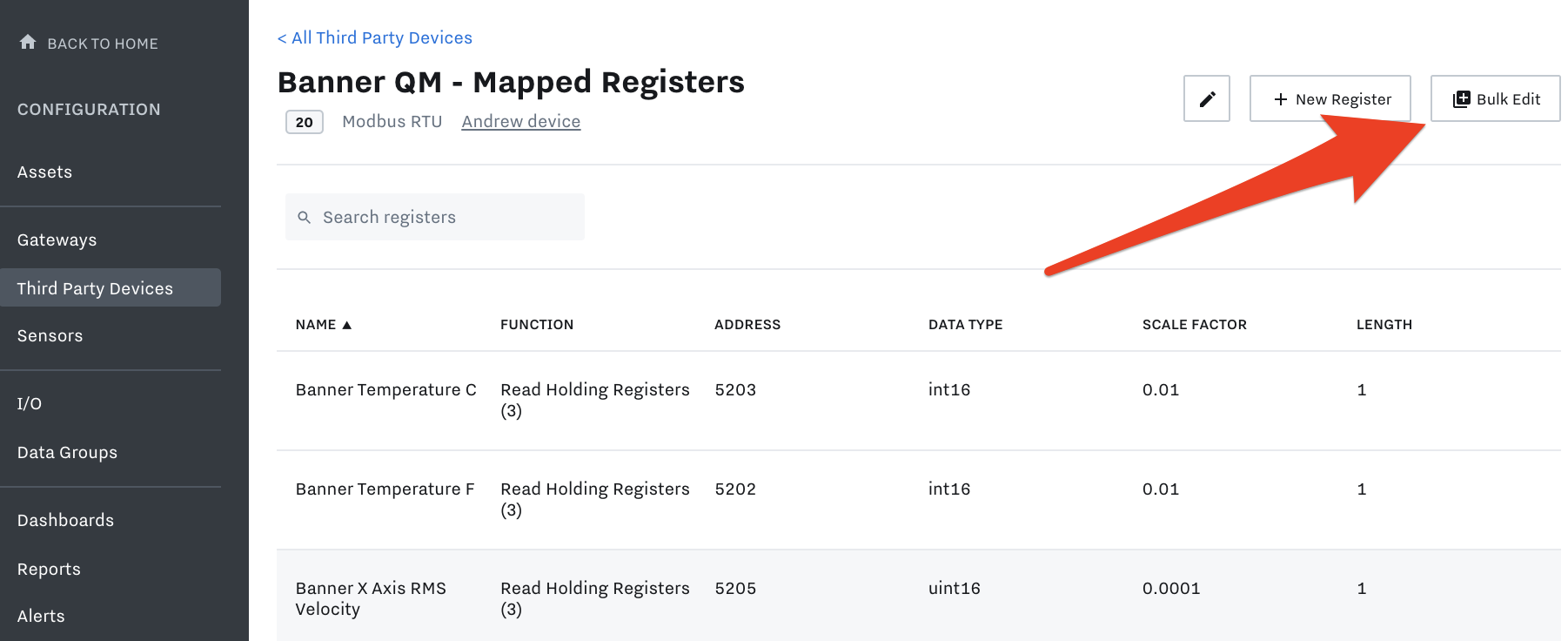 The Bulk Data Setup Tool helps easily set up the registers, pins, or tags from your third party device and automatically create data inputs or outputs. This saves time for deployments that have a large number of registers, pins, or tags to map in the system and makes it that much easier to get up and running.
