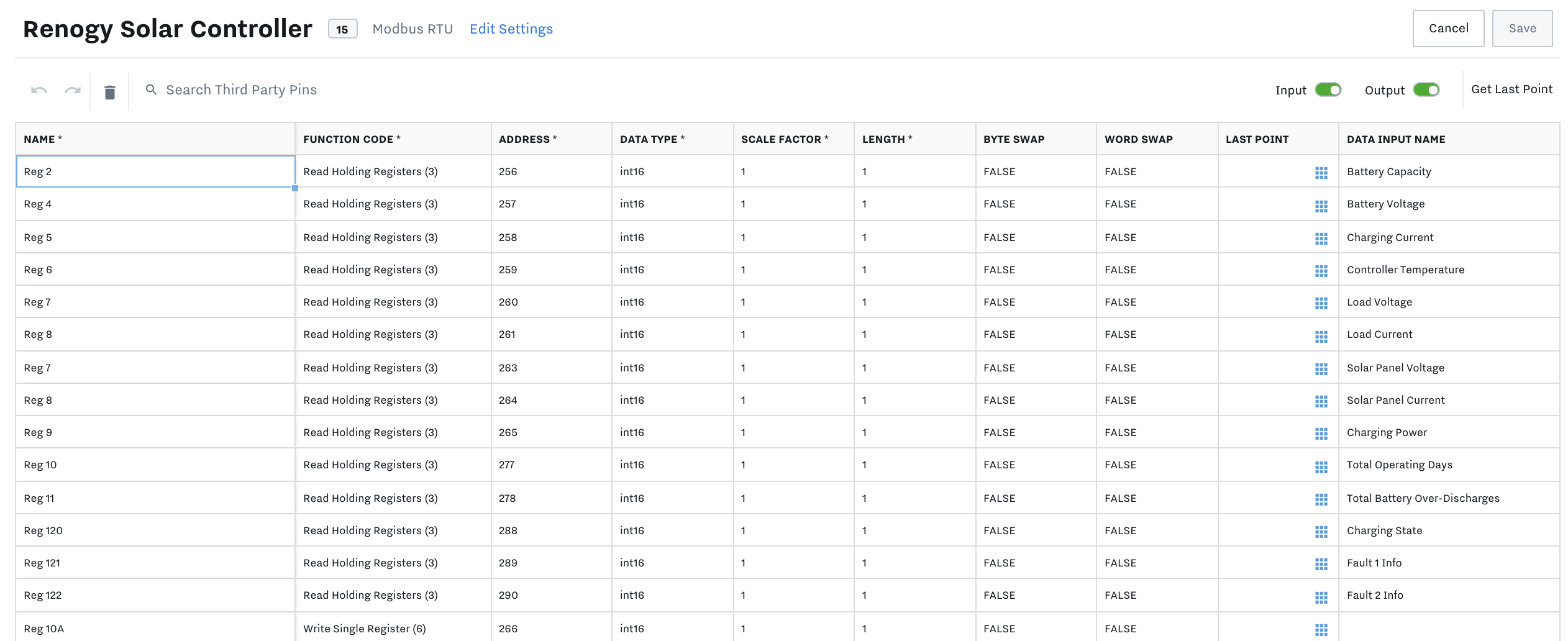 Now you will be able to copy and paste from an excel spreadsheet of registers, pins, or tags, multi-select and edit data, search for specific registers, and toggle view for data inputs, outputs, or both. The column headers will be pre-configured for each device type.